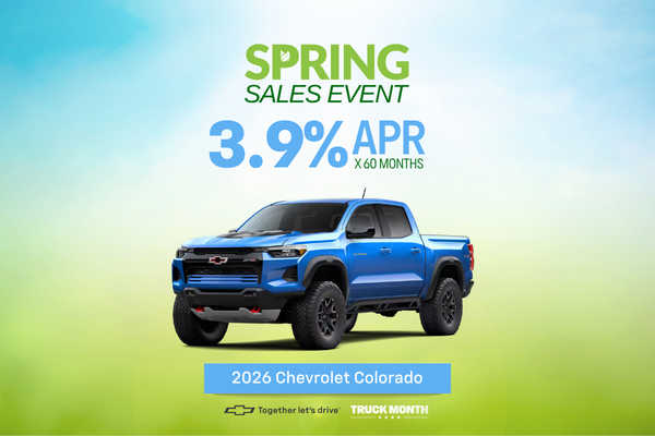 3.9% APR for 60 months for well-qualified buyers when financed w/GM Financial. Monthly payment is $18.37 for every $1000 you finance. Average down payment is 18%. Some customers will not qualify. Take new retail delivery by 04-30-2026.